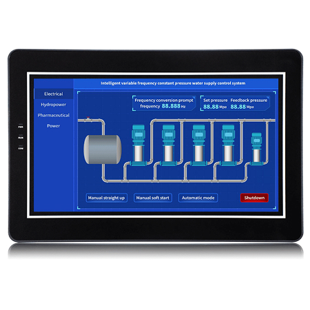 Графическая панель оператора QJ-M0100-2T2/4+/L позволяет осуществлять мониторинг и изменение содержимого регистров/состояний реле ПЛК или другого интеллектуального контроллера, поддерживающего интерфейс RS-232/RS-422/RS-485.