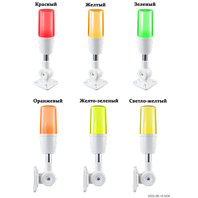 - Цвет: три основных цвета — красный, желтый, зеленый; три дополнительных цвета — оранжевый, желто-зеленый, светло-желтый