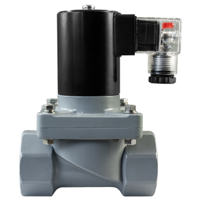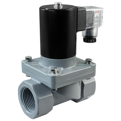Клапан соленоидный нормально закрытый непрямого действия с поршнем для агрессивных сред предназначен для управления потоком рабочей среды в трубопроводе