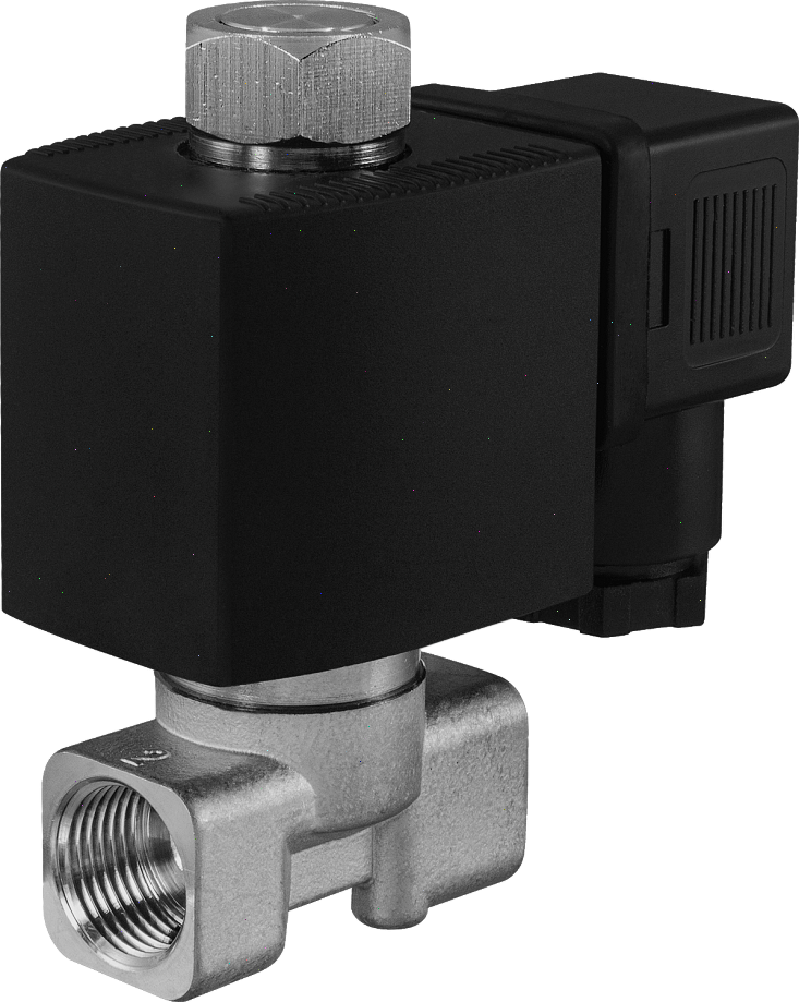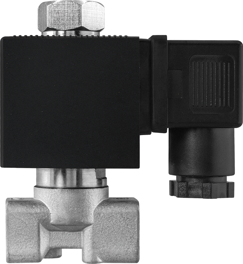Соленоидный клапан нормально открытый, прямого действия, с диафрагмой. Закрывает поток рабочей среды при поступлении на катушку клапана управляющего напряжения